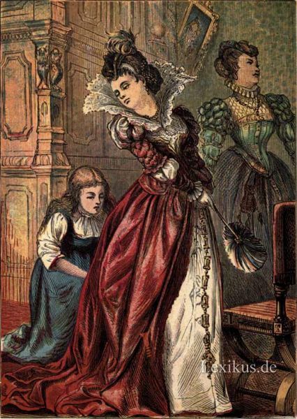 Die Frau hatte zwei Töchter mit ins Haus gebracht, die schön und weiß von Angesicht waren, aber garstig und schwarz von Herzen. Da ging eine schlimme Zeit für das arme Stiefkind an. “Soll die dumme Gans bei uns in der Stube sitzen!” sprachen sie, “wer Brot essen will, muß verdienen: hinaus mit der Küchenmagd!” Sie nahmen ihm seine schönen Kleider weg, zogen ihm einen grauen, alten Kittel an und gaben ihm hölzerne Schuhe. “Seht einmal die stolze Prinzessin, wie sie geputzt ist!” riefen sie, lachten und führten es in die Küche. Da mußte es von Morgen bis Abend schwere Arbeit tun, früh vor Tag aufstehen, Wasser tragen, Feuer anmachen, kochen und waschen. Obendrein taten ihm die Schwestern alles ersinnliche Herzeleid an, verspotteten es und schütteten ihm die Erbsen und Linsen in die Asche, so daß es sitzen und sie wieder auslesen mußte. Abends, wenn es sich müde gearbeitet hatte, kam es in kein Bett, sondern mußte sich neben den Herd in die Asche legen. Und weil es darum immer staubig und schmutzig aussah, nannten sie es Aschenputtel.
