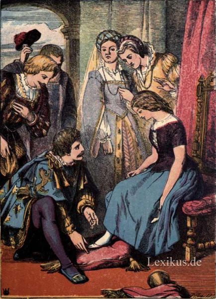 Aschenbrödel – 1) Aschenputtel, nach einem Volksmährchen hat ein reicher Mann 3 Töchter; die 2 ältesten, stolz u. eitel, verleiten ihn, die jüngste, schönere u. bescheidene wie die niedrigste Magd zu behandeln. Dadurch, daß sie einst einen als Armen verkleideten Zauberer (Alcidor) hinter dem Rücken ihrer Schwestern speist, erwirbt sie sich dessen Schutz. Auf einem, von dem Fürsten des Landes gegebenen Feste erscheinen die älteren Schwestern, die jüngste muß daheimbleiben, wird aber von Alcidor, dem Erzieher des Fürsten, prächtig gekleidet zum Fest geführt; sie gefällt dem Fürsten, und dieser erklärt ihr seine Liebe u. bietet ihr seine Hand. Erschreckt entflieht sie u. verliert einen Schuh; der Prinz findet denselben u. erklärt, nur Diejenige heirathen zu wollen, welche diesen Schuh anziehen kann. Er passt keinem Mädchen des Landes; endlich kommt Aschenputtel, erkennt den Schuh als den ihrigen u. wird die Gemahlin des Fürsten. Aschenputtel ist der Stoff zu der Oper Cendrillon von Isouard u. Cenerentola von Rossini, sowie zu Platens Lustspiel, Der gläserne Pantoffel, u. Grabbe's Lustspiel gl. Namens. 2) Eine im Haus bei Feuerung, in Küchen u. sonst sehr beschäftigte u. dabei die Reinlichkeit verabsäumende Frau.