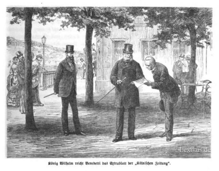 König Wilhelm reicht Benedetti das Extrablatt der Kölnischen Zeitung