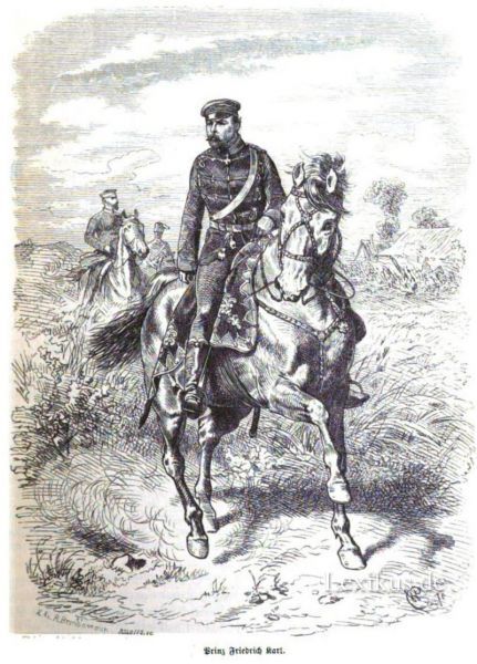 Das Atelier von Professor Bleibtreu war ein Stelldichein für viele interessante Herren, Fürsten, Offiziere und Diplomaten, die damals nicht immer voll beschäftigt waren, und es wurde fast nie ganz von Besuchern leer. Dem Herzog Ernst II. von Koburg, den ich dort kennen lernte, konnte ich mit einer Karte von Paris aushelfen, die er nicht besaß. Er wünschte, dass Bleibtreu ihn malen sollte, wie er in der Schlacht bei Wörth sein Koburger Regiment, die 95er, begrüßte, eine Szene, die aber in Wirklichkeit nie stattgefunden hatte. Bleibtreu lehnte deshalb die Aufgabe ab und ich, als sich der Herzog deshalb an mich wandte, auch, und er seufzte: „Ja, ja, wenn jetzt Feodor Dietz hier wäre, der würde das schon machen!" Dieser hatte ihn 1849 hoch zu Ross bei der Beschießung des Christian VII. und der Gefion dargestellt, wo er aber nicht gewesen sein soll, wie Bleibtreu sagte. Der alte joviale Herzog Eugen Erdmann von Württemberg, Verfasser eines größeren Epos: „Edessa", der zunächst immer mit einer wohlgefüllten Zigarrentasche bei der Hand war, der Herzog von Altenburg und der Fürst von Rudolstadt erschienen öfter bei uns, ebenso bayerische und württembergische Generale, wie Kriegsminister v. Prankh, die Generale Graf Bothmer und Frhr. v. Baumbach, die Minister v. Lutz, von Friesen und v. Freydorf und die dem kronprinzlichen Hauptquartier attachierten bayerischen Offiziere v. Freyberg und v. Stauffenberg, der württembergische Major v. Faber du Faur, und viele viele andere. Sie hatten alle soviel Zeit und Interesse für die Kunst! Auch der Kronprinz, obgleich er dienstlich stark in Anspruch genommen war, fand Zeit, uns im Atelier zu besuchen, er erschien eines Nachmittags mit zwei Adjutanten, über und über beschneit und nahm mit lebhafter Teilnahme von Bleibtreus und meinen Skizzen Kenntnis."