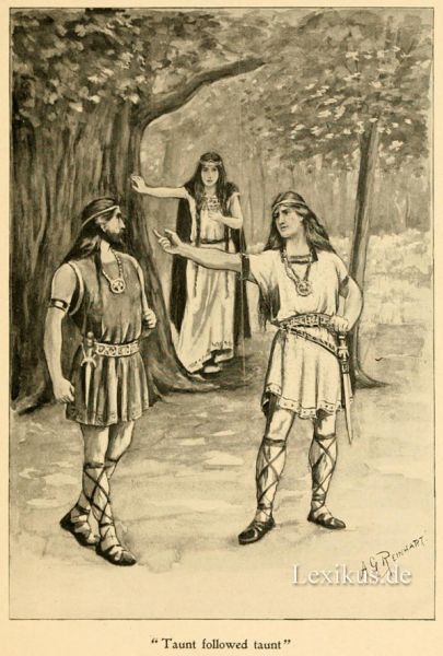 The old Beowulf is a minstrel’s song of hero deeds, in which a period of four generations is covered. The tale opens with Sceaf the Scylding, who comes out of the sea, is made King, dies, and is sent back into the sea in the opening lines. There is his son, who is called Beowulf, and Beowulf’s son is Hrothgar. While this Hrothgar is on the throne, there comes another Beowulf, a Gothic warrior, who fights with Grendel and with the Water-Hag, and then goes back to his own country, where he is made King, and, after reigning for fifty years, is killed in extreme old age in a fight with a Dragon. The old poem has thus no unity of time or place; neither has it any portraiture of womanhood; and there is no suggestion of a love story. The action takes place in Denmark and in Sweden; yet the claim has been made that the scenery described is in England. It seems clear that the Angles and Saxons, who were neighbors of the Danes on the Continent, brought the story over to England, and that it was made to assume literary form before the Danes forced themselves into England as conquerors.