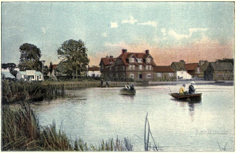 A yachting tour through these water-highways will prove a delightful source of pleasure to all lovers of an aquatic holiday, and in the diversity of scenery and amplitude of amusement, the most fastidious will be content. To the seeker of rest and quietude, the lily-spread lake, the narrow water-road, with its characteristic tall reeds and bulrushes, the luxuriant growth of flowers and grasses by the riverside, the song of the lark, high in the blue heavens, and the dreamy glamour of it all, will appeal and charm. To the more vigorous holiday-maker, the animated scenes of the regattas at Wroxham, Oulton, and Acle; the exhilarating rush with the breeze, up rivers and across lakes, will afford unbounded pleasure; while the angler will meet with good sport, and may be able to add to the larder a variety of fish. The atmosphere is pure and invigorating, and will give renewed health and strength to all who spend a holiday at this beautiful English lakeland.