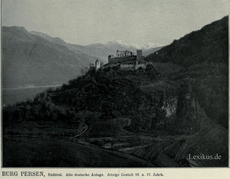 023 Burg Persen, Südtirol. Alte deutsche Anlage. Jetzige Gestalt 16. und 17. Jahrhundert.