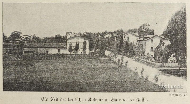 In Palästina bestanden 1914 insgesamt sieben deutsche Kolonien mit ungefähr viertausend Seelen. Fast alle Siedlungen waren von Württembergern gegründet. Die Mittelpunkte dieser auf zwölf bis fünfzehn Millionen Mark geschätzten Kolonien waren Jaffa und Haifa. In der Siedlung Wilhelma bestand die erste landwirtschaftliche Schule, die für die gesamte Bodenbewirtschaftung Palästinas Mustergültiges leistete. Von der unermüdlichen Tätigkeit der deutschen Siedler ging für das ganze Land der größte Segen aus, da unter den schwierigsten Bedingungen die Wüste und das Ödland, das sie hier vorfanden, zu fruchtbaren Äckern umgestaltet werden musste. Mit unendlichem Fleiß hatten deutsche Siedler umfassende Kulturen angelegt und Tausenden von Menschen Arbeit und Verdienst verschafft.