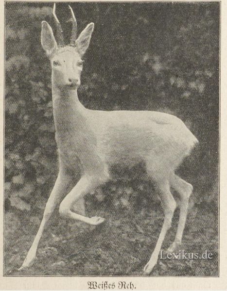 So anmutig ein weißes Reh mit roten Augen uns auch erscheinen mag, ist es doch ein bedauernswertes Geschöpf, da seine — zudem kurzsichtigen — Augen vom hellen Tageslicht geblendet werden. Es zeigt vollkommene Weißsucht, wie man die krankhafte, auf Fehlen des natürlichen Farbstoffes beruhende Erscheinung nennt. Solche Albinos oder Kakerlaken treten ab und zu in fast allen Klassen des Tierreiches auf, ja, sie sind häufiger, als nach unseren doch mehr zufälligen Beobachtungen angenommen wird.