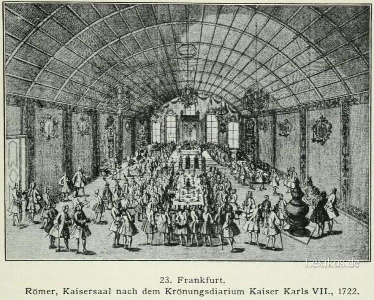 23. Frankfurt. Römer, Kaisersaal nach dem Krönungsdiarium Kaiser Karls VII., 1722.
