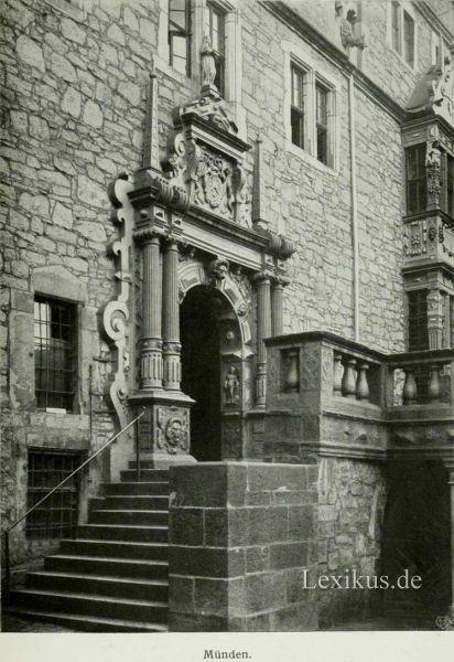 Der Gruppenbau, der in Rinteln die ganze Frische einer ungezwungenen Lösung atmet, ist in Hersfeld und noch mehr in Münden in ein System großartiger Symmetrie gebracht. Dabei lautete das Programm an beiden Plätzen ganz verschieden. In Hersfeld handelte es sich darum, einem verhältnismäßig jungen Amtshaus einige fehlende Räume anzufügen. Mündens Ratsbaumeister stand vor der schwierigen Aufgabe, einen gotischen Saalbau von massigen Abmessungen unter Schonung des alten Grundrisses zu einem umfangreichen modernen Verwaltungsgebäude auszubauen.