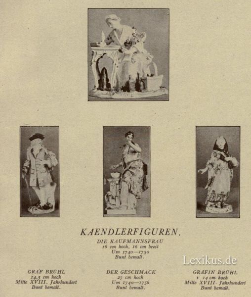 Auch hinsichtlich der farbigen Dekorierung des Porzellans muss es dabei bleiben, dass kein Stilcharakter irgendeiner Zeit und irgendeiner künstlerischen Kultur diesem keramischen Materiale so seinen Charakter lässt wie das Rokoko, das die leuchtendweiße Außenseite des Porzellans nicht so durch Farben verdeckte, dass nichts mehr von seiner schimmernden Schönheit zu sehen war; ein Tüpfelchen Rot auf jede Wange, ein winziger blauer Punkt in die Augenhöhlen, ein paar leichte kirschrote Linien an die Lippen, ein zarter Hauch von Rosa um die Nasenflügel, bunte leuchtende Farben auf das Gewand — so stellen sich die Figuren aus der Kaendlerzeit vor uns hin als eine ganz wundersam geartete Welt im Kleinen, als eine Welt, die zwar nicht voller Naturwahrheit, aber doch voll reizvoller Natürlichkeit ist, als eine Welt, die wir lieben müssen, weil sie voller Grazie und Anmut, voller Formenschönheit und Farbenfreude ist.