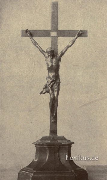 Tafel V. Kruzifix. Dunkel- und hellbraunes, leicht marmoriertes Böttgersteinzeug