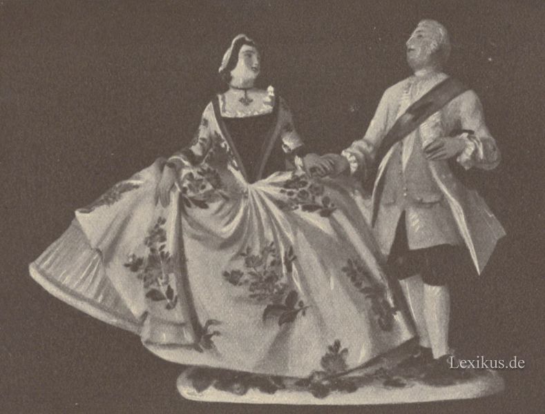 Tafel VIII. Krinolinengruppe (August III. und Gemahlin). Modell von Kaendler. Bunt bemalt