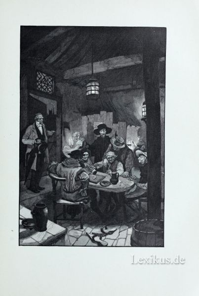 Von nah und fern waren der Gäste viele zu dieser Hochzeit eingeladen, denn der Schmied, obschon sonst in dem Rufe, wie weiland der reiche Mann im Evangelio, den Armen nicht die Brotsamen, welche von seiner Tafel fielen, zu gönnen und zu geben, wollte doch bei dieser Gelegenheit seinen Reichtum in voller Glorie zeigen; Wochen lang vorher wurde schon gebraten und gesotten, und Rinder, Schweine und Federvieh hatten den Tod mehr als eins ihrer wohlbeleibtesten Konsorten zu betrauern.