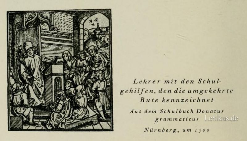 004 Unterricht im Singen, Lesen und Rechnen in einer Stadtschule mit einer Züchtigungsszene