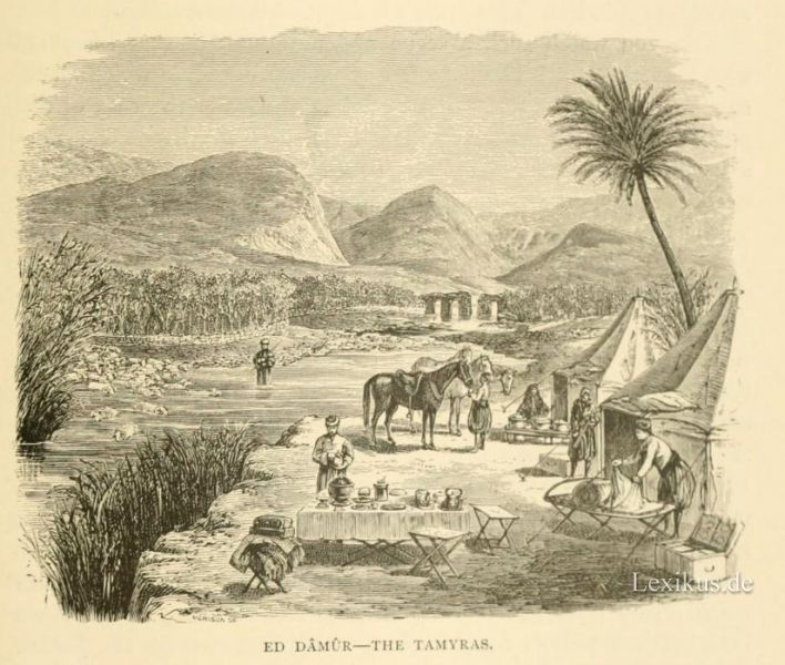 Schiffbare Flüsse besitzt das ganze Gebiet nicht. Alle seine Flüsse sind wasserarm, die größten kaum 1 m tief und 30 bis 50 m breit, und sind als Gebirgsflüsse ziemlich reißend. Nur wenige Flüsse haben einen längeren Lauf. Es sind die oben schon erwähnten drei Flüsse, welche die tiefe Einsenkung zwischen dem westlichen und östlichen Gebirgsland durchfließen: der Orontes (Nahr el Asi), der im Libanon bei Baalbeck entspringt, die Ebenen von Homs und Hama durchfließt und nach einem fast 300 km langen, nördlich gerichteten Lauf in der Nähe des Antiochia-Sees westlich ins Mittelmeer einbiegt; der Litani, der ebenfalls im Libanon unweit Baalbeck entspringt, von Nordosten nach Südwesten die zwischen Libanon und Antilibanon eingesenkte fruchtbare Ebene Bekaa (Cölesyrien) durchfließt, um sich dann mit einer Biegung nach Westen bei Tyrus (Sur) ins Mittelmeer zu ergießen; und der Jordan (Scheriat el Kebir), der vom Hermon kommt, den Hule- und Tiberias-See durchfließt und nach einem südlich gerichteten Lauf von etwa 200 km ins Tote Meer mündet. Neben diesen „Längsflüssen" gibt es noch einige kleine „Querflüsse", unter denen der Nahr el Kebir (bei Lattakie), der Kadischa (bei Tripoli), der Nahr Ibrahim und der Nahr el Kelb (bei Beirut), Kison (bei Haifa), Audscha (bei Jaffa) vom westlichen Gebirgsland ins Mittelmeer strömen, während vom östlichen Hochland, und zwar vom Antilibanon der Barada und der Nahr el Awadsch durch die Ebene von Damaskus in östlicher Richtung zur Steppe, und vom Adjlun der Jarmuk und Zerka in westlicher Richtung zum Jordan fließen. Vom Taurus kommen das Flüsschen Kuweik, das Aleppo durchfließt und in den Steppensumpf El Madsch mündet, und die Flüsse Kara Su und Afirin Su, die sich in den See von Antiochia ergießen. Die beiden Flüsse Seihun und Dschihan, welche alle vorgenannten an Wasserreichtum übertreffen, entwässern die cilicische Ebene (zwischen Amanus und Taurus) und gehören schon nicht mehr zu Syrien.
